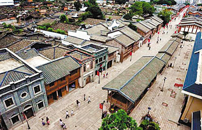 以南街為中軸,左右兩側的坊巷共有十處,佔地約40公頃,為中國十大歷史文化名街之一。三坊為衣錦坊、文儒坊和光祿坊;七巷則是楊橋巷、郎官巷、安民巷、黃巷、塔巷、宮巷、吉庇巷。唐先生簡略介紹後,意猶未盡地指著民居說明「三坊七巷裡房子的特色為白牆瓦屋,門窗漏花採用鏤空雕刻,還有精細豐富的圖案花飾,精巧的石刻與木雕,台階,門框,花座等等,建築界譽稱此地為『明清古建築博物館』。」一邊穿坊過巷,到了一處,唐先生停下腳步,門口的牌子掛著「福州辛亥革命紀念館」。唐先生卻說「這裡是冰心故居。」原來另一門柱上掛的木製牌子正是「冰心故居」。名氣很大的冰心,在海外的讀者對她的作品讀得不多,只集中在描述母愛的文章。來過以後再返莆田,買了一冊薄薄,應是給學生看的《我的故鄉》。冰心筆下的故居「具有很典型的福州民宅特點,除中軸建築外,左右兩旁還有許多自成院落的房屋,每個院落都有水井;北院之西還橫亙著一列坐西朝東的雙層樓房,樓房之西為花園。我看著就想起北方典型的四合院,然而北方的四合院裡湧動大片的陽光和風沙,喧鬧著的人生,只有在夜深人靜時黃黃的毛月亮才搖碎一地槐花的清香。這裡卻是安靜的—青石板鋪地,假山點綴,花木扶疏。臨窗一角,竹影搖曳,梅溪沁寒。」
