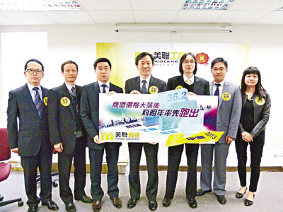 ■美聯工商舖行政總裁黃漢成(左四)預期,明年商廈市道向好。 周穎 攝