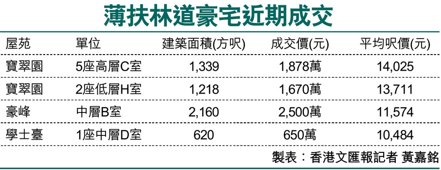 薄扶林道 尊貴地段 叫價硬淨 寶翠園呎價企穩萬四 (圖)