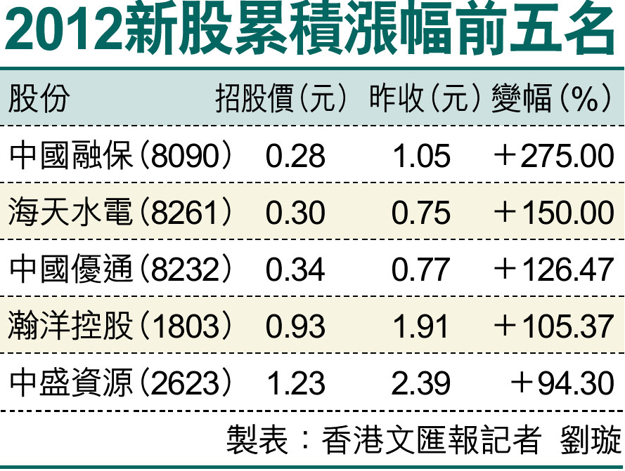 2012新股首日升幅前五名 (圖)