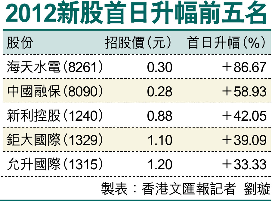 2012新股首日升幅前五名 (圖)