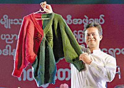 ■緬甸反對派領袖昂山素姬30年前居英時親手編織的一件V領紅、綠、藍三色羊毛衣,昨於緬甸拍賣,結果以高於底價近8倍的4.9萬美元(約38萬港元),由當地一家電台投得。拍賣活動由昂山所屬緬甸全國民主聯盟籌辦,冀為緬甸貧困孩童籌募教育經費。 美聯社