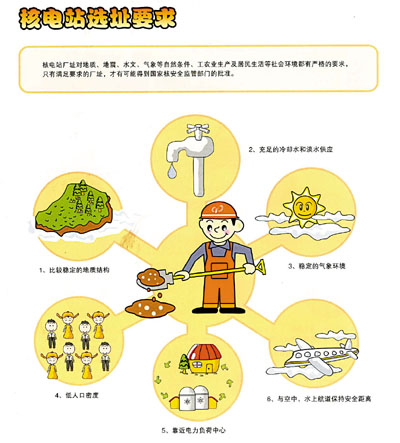 核電站選址條件十分苛刻,對人口密度與分佈、土地及水資源利用、動植物生態狀況、農林漁業、工礦企業、電網連接、地質、地形、地震、海洋與陸地水文、氣象等因素都有嚴格的要求。