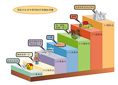 人類所受到的集體輻射劑量主要來自天然本體輻射(約76.58%)和醫療(約20%),核電站產生的輻射劑量非常小(約0.25%)。聯合國原子輻射影響科學委員會2010年發佈報告稱,在所有人為因素導致的輻射中,醫療輻射所佔的比例高達98%。