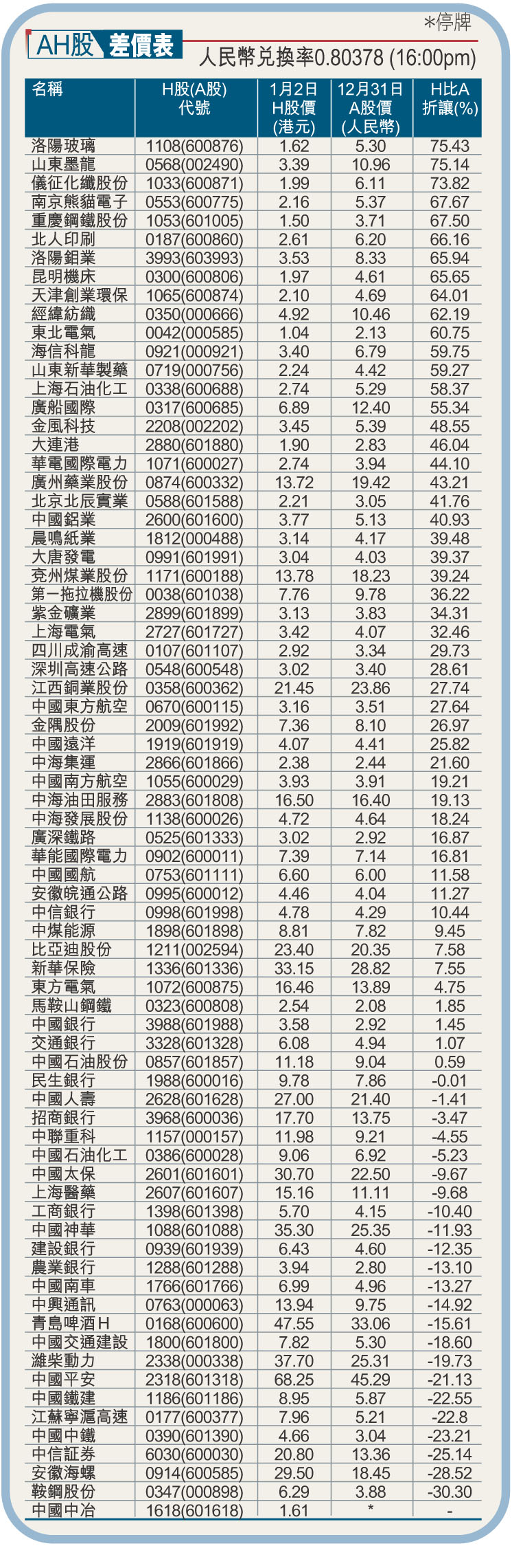 AH股差價表 *停牌 (2013-01-03) (圖)