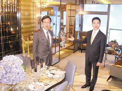 ■新地雷霆(左)表示,天晉2期的1,200方呎4房戶,主人房無窗台。 記者梁悅琴 攝