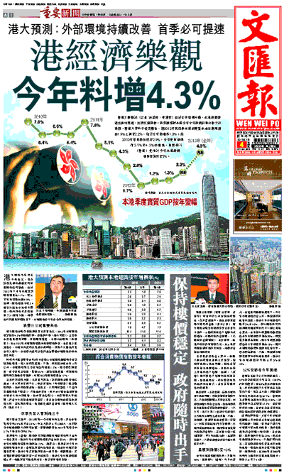 港大經濟金融學院助理教授王家富指出,2013年本港經濟有望錄得4.3%的強勁反彈,該預測不是「過分樂觀」,主要是由於低息環境持續、美國經濟復甦、中國內地經濟「保增長」,加上2012年本港經濟增幅的基數較低所致。由於息口長期低企,本港的消費和投資成本都偏低,市民不太願意將資金存入銀行,故相信消費和投資將成為帶動本港經濟反彈的重要角色。