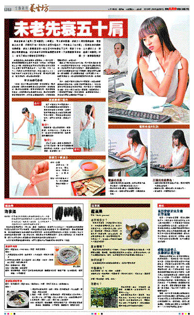 有否嘗過晚上拖著疲憊的身軀回家,一躺下沙發,頓時感到肩膊肌肉出現陣陣痛楚?如果有,你可能已患上五十肩!博愛醫院世界針灸學會聯合會針灸專科中心註冊中醫師覃彪民表示,「五十肩」中的「五十」,乃源於大部分發病年齡,均為50或以上人士,惟近年有不少在辦公室工作的白領、經常使用電腦者、職業司機等,都出現有關病徵。