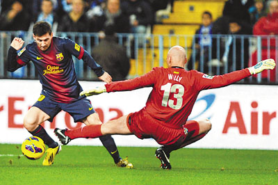 新華社馬德里13日電 憑藉美斯的一傳一射,巴塞13日晚於客場以3:1戰勝馬拉加,以18勝1和的戰績結束了西甲前半程的征戰。