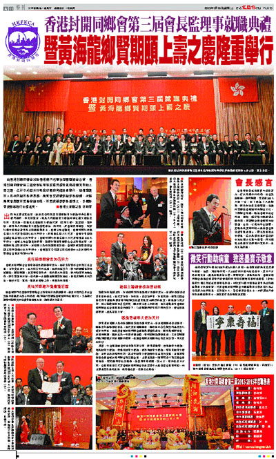香港封開同鄉會會長黃桂榮致歡迎辭時表示,他有幸蟬聯本會的第三任會長,自知責任重大,在未來三年的任期,他將加倍努力,對內將繼續保持精誠團結,服務鄉親,並實現培育新秀、傳承薪火的目標;對外則堅持加強合作,廣泛聯誼的方針,務求進一步貫徹為鄉親謀取福祉,關懷家鄉興革的宗旨,做好介紹、宣傳、推廣封開等工作,再創新的里程。