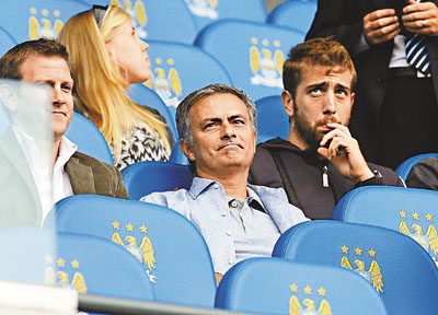 ■摩連奴(中)今季幾度返回英超賽場觀戰。 法新社
