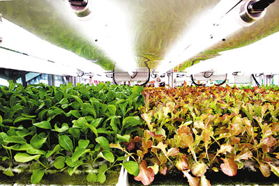 ■「全環控水耕技術」可利用空置工廈全年無休生產蔬菜,生產過程不受環境影響,平均11日即可收成;傳統耕種則需要多2倍至3倍時間。劉國權 攝