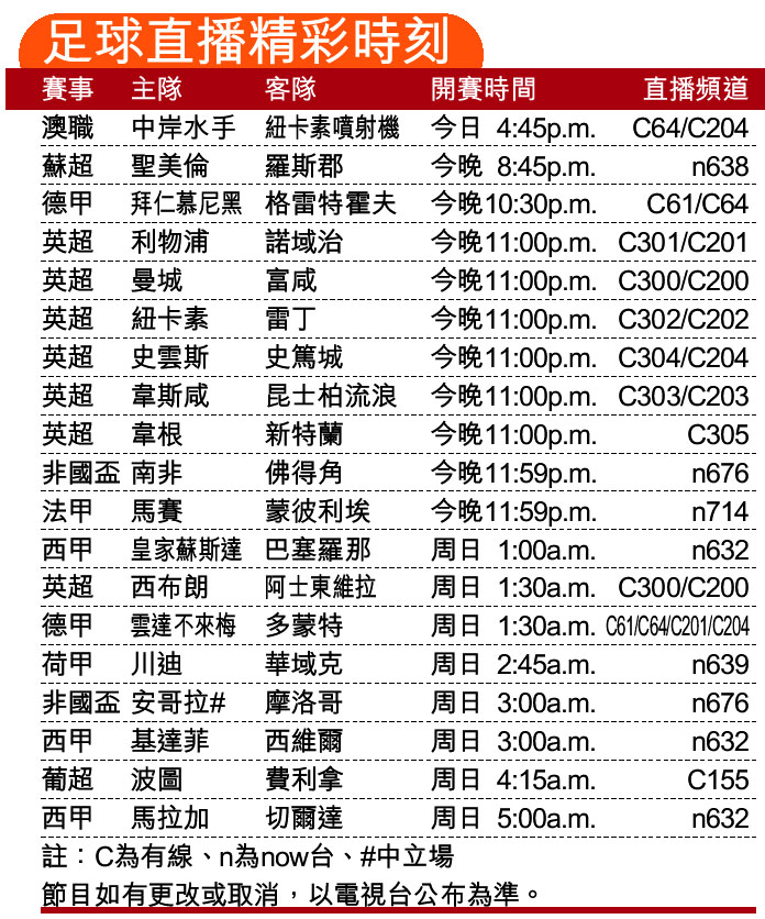 足球直播精彩時刻 (圖)