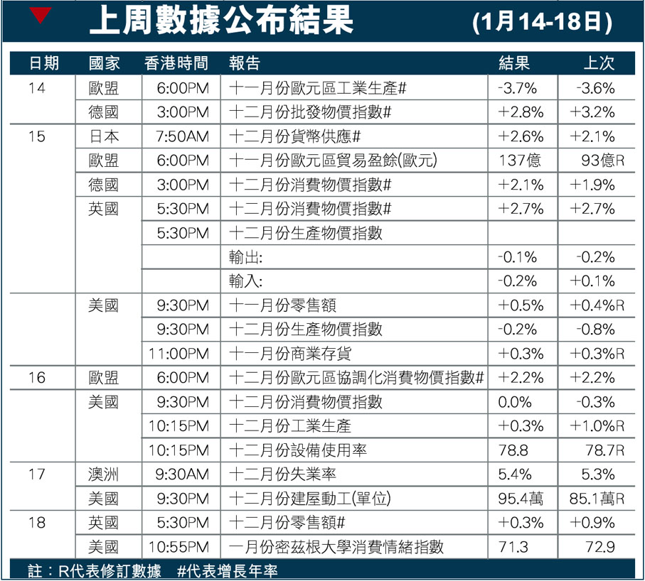 上周數據公布結果(1月14-18日) (2013-01-21) (圖)