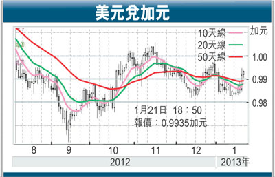 另一方面,受到歐洲央行委員 Ewald Nowotny 表示歐元匯價並不是主要的關注問題後,歐元兌加元交叉匯價已進一步於上周五反覆上揚至1.3245附近的9個多月來高位,而加元匯價亦因此相應遇到較大的回吐壓力,再加上美國於上周四公布了強勁的經濟數據後,加元還依然未能向上突破過去1個多月來位於0.9815至0.9825水平之間的主要阻力區,故此部分投資者已是較為傾向先行沽出加元獲利的情況下,加元遂反覆走低至0.99水平。雖然加國央行在去年大部分時間的言論均是傾向略為緊縮其貨幣政策,但由於市場現時仍認為加國央行將會在本周三的政策會議上繼續維持加元利率不變,預料加元將反覆走低至1.0020水平。
