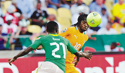 2013年非洲國家盃足球賽首輪之前的六場比賽出現五場平局,但這並不妨礙22日D組兩場比賽的驚心動魄。奪冠熱門科特迪瓦隊憑藉在英超聯賽中效力的耶耶托尼和謝雲奴(圖右)的出彩發揮,以2:1險勝多哥隊。