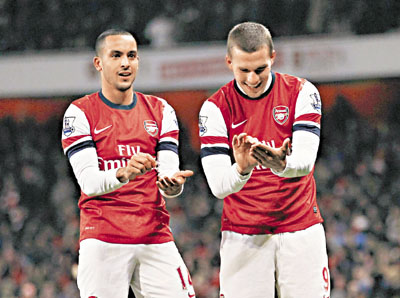 在聯賽連續輸給曼城以及車路士後,阿仙奴終於以一場大勝來走出頹勢。昨晨英超第23輪補賽,跟首循環對韋斯咸時差不多,阿仙奴在先失1球後反勝,今次更憑藉下半場11分鐘內狂入4球,主場以5:1大炒倫敦同市對手。球隊贏波後距排名第4的熱刺仍有4分差距,暫列積分榜第6位,要避免之前連續15年都取得歐聯資格的佳績斷纜,還需努力。
