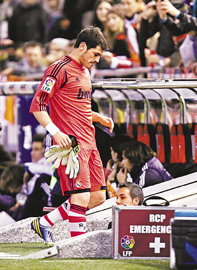 皇家馬德里教練摩連奴早前將門神卡斯拿斯貶為後備,如今球隊在未來兩至3個月就真的沒有這位西班牙隊長把關了。卡氏日前在西班牙盃被隊友撞傷左手骨折,要休息8至12個星期,將錯過下月對曼聯的歐聯賽事,而在中堅比比仍未完全傷癒下,加上翼鋒迪馬利亞和左閘法比奧干查奧停賽,皇馬周中西班牙盃硬碰巴塞羅那,將要殘陣應戰。皇馬即簽入西維爾31歲前皇馬青訓球員迪亞高盧比斯,據悉轉會費約為350萬歐元。