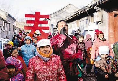 ■臨近春節,八成北京居民支持不放煙花。圖為北京「春官春吏」報春活動。 中新社