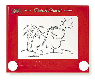 1960年面世的「神奇畫板」(Etch A Sketch)(小圖)是兒童畫畫及寫字的好工具,發明者卡薩涅上月在法國逝世,終年86歲。卡薩涅本身任職電氣技工,其後設計神奇畫板並推出市場,至今售出逾1億件。神奇畫板歷久不衰,包括電影《反斗奇兵》及去年美國大選的羅姆尼團隊均有提及。 ■《星期日電訊報》