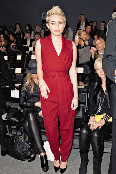 青春女歌手Miley Cyrus(見圖)前日出席「Rachel Zoe天橋騷」,她以一身紅色褲裝到場,但原來上身是內有乾坤,真空上陣。在她到場途中,被記者「高炒」影到她邊行邊有半邊胸部走了出來,險些兒便走光。幸而,她入到場內即時發現,整理好上衣才示人,避免尷尬場面進一步發生。Miley對自己一身造型似乎頗為滿意,在Twitter放上她當日的造型照與粉絲共享。時裝騷上她獲安排坐在前排欣賞,整場騷也表現得開懷。 ■文:Bosco/圖:美聯社