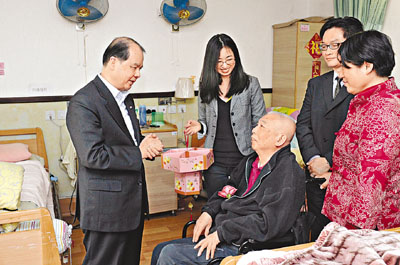 張建宗昨日在荃灣及葵青區福利專員林定楓陪同下,到達由私營機構營辦的合約院舍——松悅園耆欣護養院暨日間護理中心。他先聽取負責人介紹護養院和日間護理中心服務,再參觀設施,並向長者拜年,祝他們身壯力健,萬事如意,及送上大柑,共慶新春。