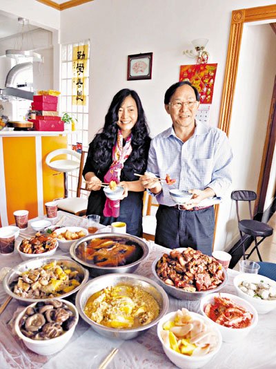 ■梁志祥與太太昨日邀請傳媒品嚐屏山特色的九大盞。香港文匯報記者鄭治祖 攝