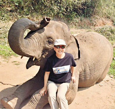 今年情人節,民建聯新界東立法會議員葛珮帆(EQ)到泰國與「小情人」會面—只有6歲的小大象「Thangmo」(西瓜):西瓜與很多同伴早前被賣到城市,每天在惡劣環境下為遊客表演10多小時。早前,「金三角亞洲大象基金」、Anantara Hotel及四季酒店把牠們買回來,並在金三角的自然環境下保育及研究。葛珮帆供圖 文:鄭治祖