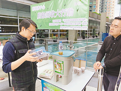 香港文匯報訊(記者 鄭治祖)特首梁振英去年發起「推動消滅廚餘運動」,希望市民從源頭減廢,令香港成為更環保的城市。民建聯立法會議員陳克勤昨日出席將軍澳中心的處理廚餘活動時,發現有更便捷的處理廚餘技術:只需要一個大桶和一包酵母菌,也可在家中輕易地處理廚餘,他並計劃在民建聯立法會的辦公室推行「試驗計劃」。