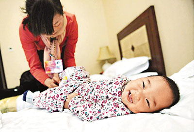政協委員彭偉平7個月大的孩子成為最年幼的隨員。