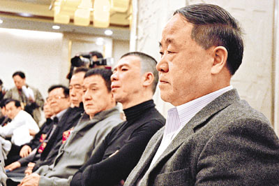 新任政協委員莫言面對媒體始終「守口如瓶」,人如其名。 記者王添翼攝