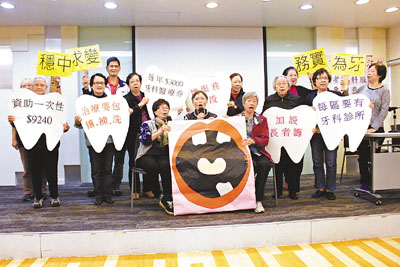 ■敬老權益關注組促請政府增加長者護理牙齒資助。劉雅艷 攝