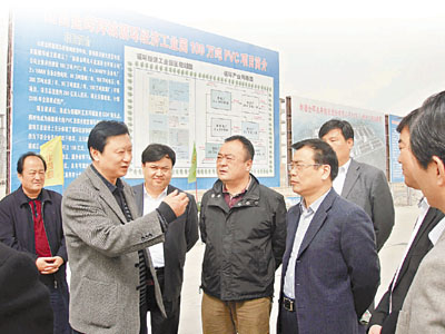 ■地委書記黃三平(右一)調研拜城八鋼和金暉項目