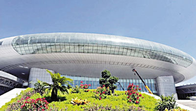 ■新疆國際會展中心大樓外花團錦簇