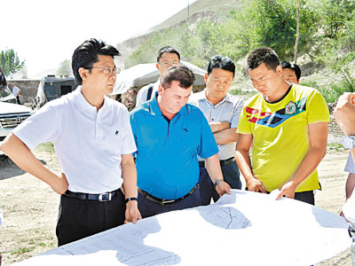 ■伊犁哈薩克自治州黨委常委、霍城縣委書記王進健(左一)下鄉調研。