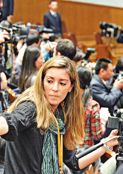 ■十二屆人大14日選出新一屆國家機構領導人,吸引眾多媒體採訪。 中通社
