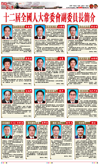 十二屆全國人大常委會副委員長簡介 (圖)