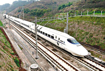 ■和諧號動車飛馳在遂(四川遂寧)渝(重慶)鐵路上。