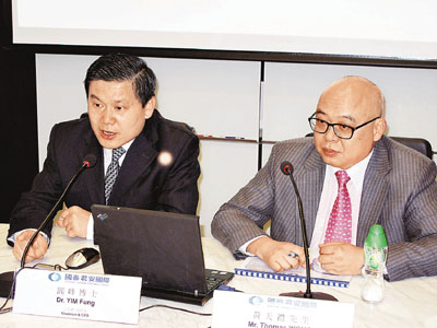 ■國泰君安主席兼行政總裁閻峰(左),及首席財務總監黃天禮。 記者周紹基 攝