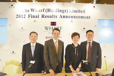 另外,2012年度內本港零售市道開始放緩,集團旗下尖沙咀海港城及銅鑼灣時代廣場於今年首兩個月營業額仍有雙位數升幅,未有受影響,預期今年有雙位數增長。海港城平均月租每方呎320元,按年升19%。李玉芳表示,近期經濟增長放緩無礙公司租金收入表現,料商場銷售將可錄低雙位數升幅,又預期今年本港整體寫字樓租金亦會穩步上升。