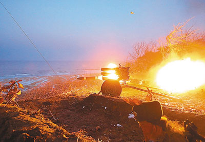 ■朝鮮軍隊日前進行反登陸訓練,金正恩到場視察。路透社