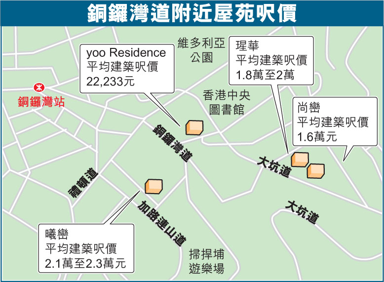 銅鑼灣道附近屋苑呎價 (圖)