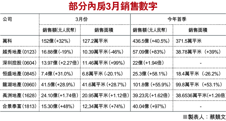 部分內房3月銷售數字 (圖)