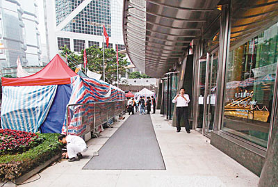 ■長江中心早前成功申請臨時禁制令,圖為昨日移去正門前的鐵馬。香港文匯報記者黃偉邦 攝