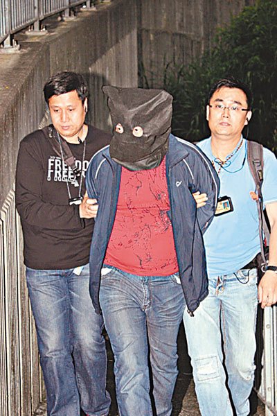 ■涉大埔3宗爆竊案的男子被蒙頭帶署。