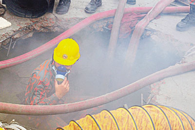 女工沙赫納茲數日前被救援人員發現,消防員連日切斷水泥鋼筋,希望清除障礙,不料現場突然起火冒出濃煙,只能眼睜睜看著她斷氣,不少人悲慟痛哭。火災令最少3名救援人員受傷,搜救工作叫停。