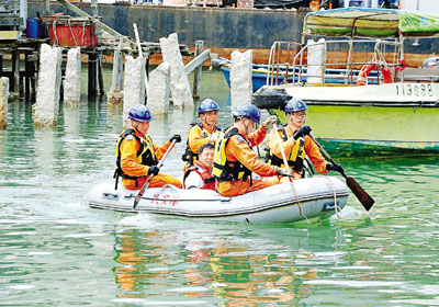 政府昨日在大澳演練,加強各部門在嚴重水浸下的準備和應變能力,並向居民宣傳緊急應變計劃。多個部門包括離島民政事務處、消防處、警務處、天文台、渠務署、社會福利署、房屋署、民眾安全服務隊、大澳鄉事委員會及鄰舍輔導會等,在大澳舉行水浸模擬救援演練,旨在讓參與救援和疏散居民的政府部門和地區團體代表,熟習有關程序,以便在天文台發出大澳水浸預警時,更有效率協助疏散居民,及減低水浸所造成的影響。