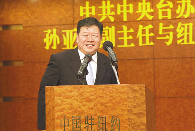 ■國台辦副主任、海協會副會長孫亞夫在美國紐約僑界招待會上講話。 中新社