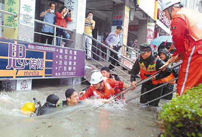 據氣象部門消息,廈門從15日晚起降下傾盆大雨,主要集中在廈門東南部地區,鼓浪嶼和廈門島內多處地方降水都超過100毫米。到16日凌晨,在湖里區一個因暴雨被淹的村莊中,消防中隊出動了衝鋒舟才得以將30餘名被困村民解救出來。