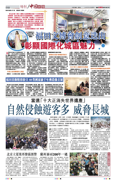 開幕當日,在文博會主會場一號館福田展區,世界模特大賽獲獎者及優秀選手的靚麗身影吸引了眾多觀眾眼球。新穎別緻,採用低碳環保新材料甘蔗板搭建的主展館更是吸引了眾人的目光。據瞭解,福田區今年精選了28家高端文化企業進入主展區,對體現福田特色和科技開發能力的各類「文化+科技」產品進行集中展示。還首次增設「文化創意設計十大精英」內容,展示福田區設計行業十位最具名氣的精英人物的設計作品。